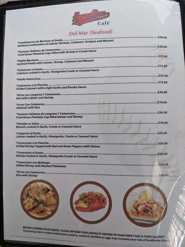 Home Run Cafe Menu